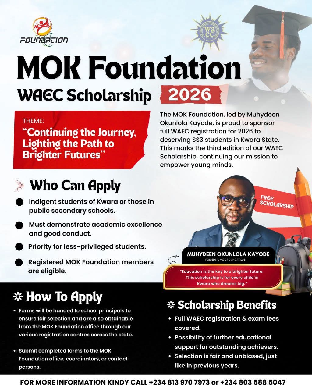 MOK Foundation Announces 2026 WAEC Scholarship in Kwara The Muyideen Okunlola Kayode (MOK) Foundation has announced the commencement of its…